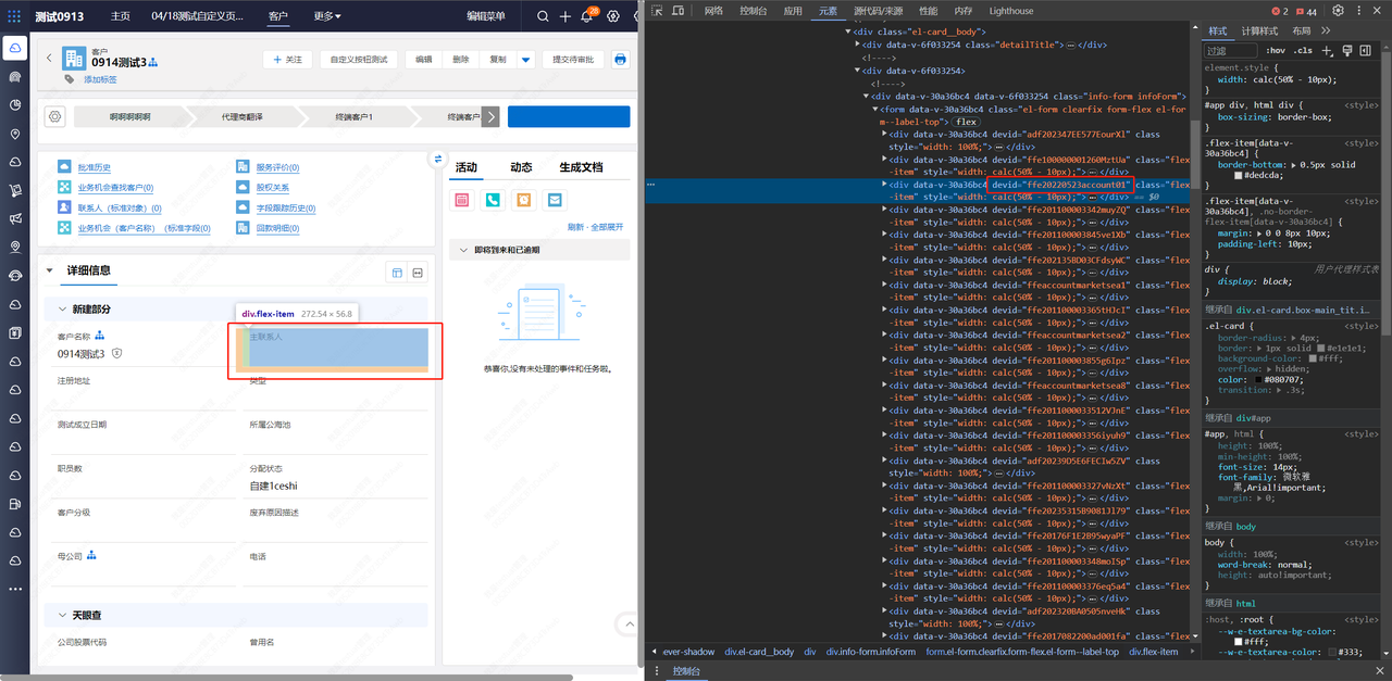 为了方便开发者更方便控制元素,我们在平台的关键dom上添加了devid自定义属性,此ID使用特定的业务ID绑定,可以标记出系统的特定元素,用于控制