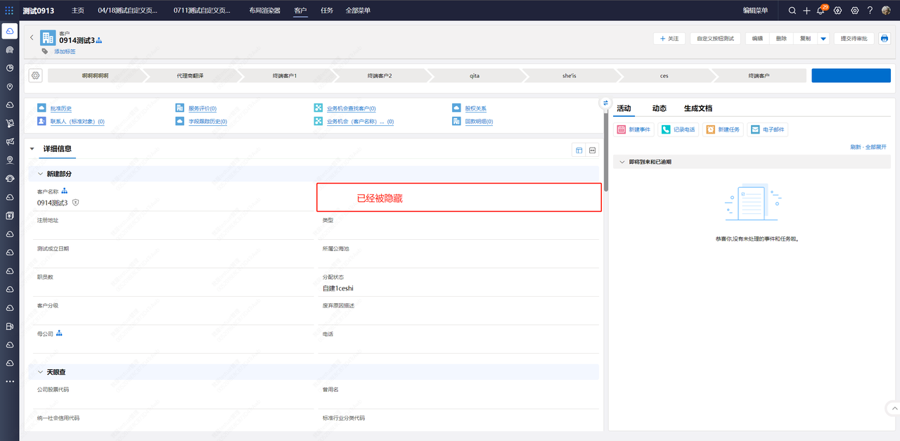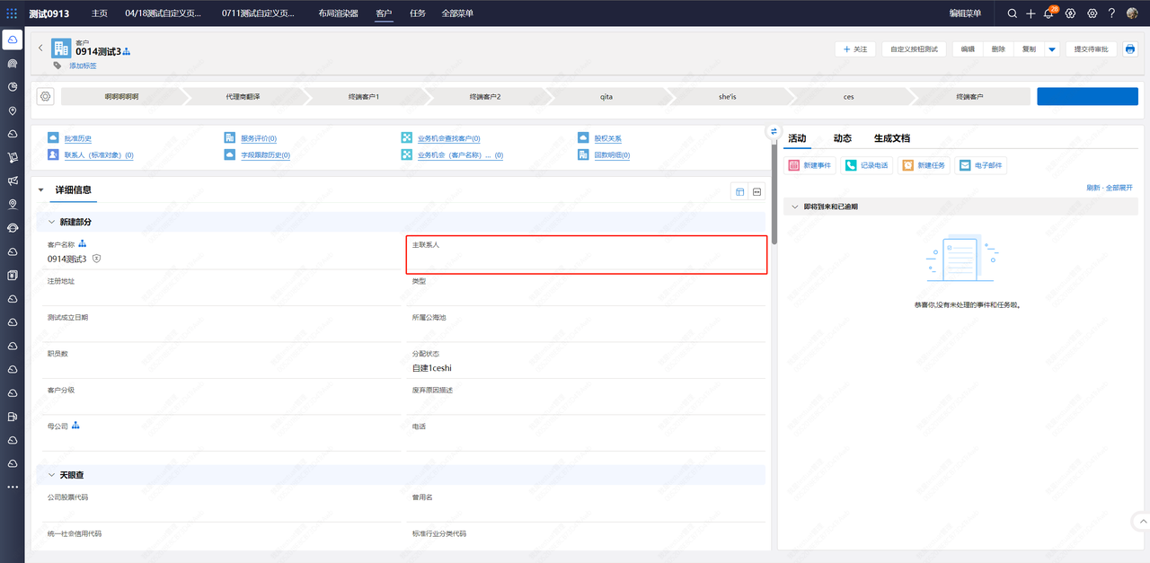 - 例如:隐藏“主联系人字段”